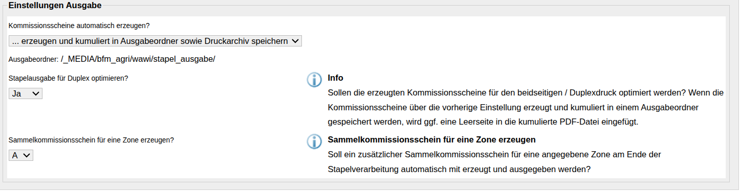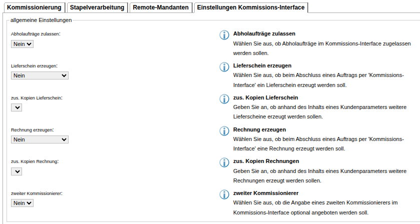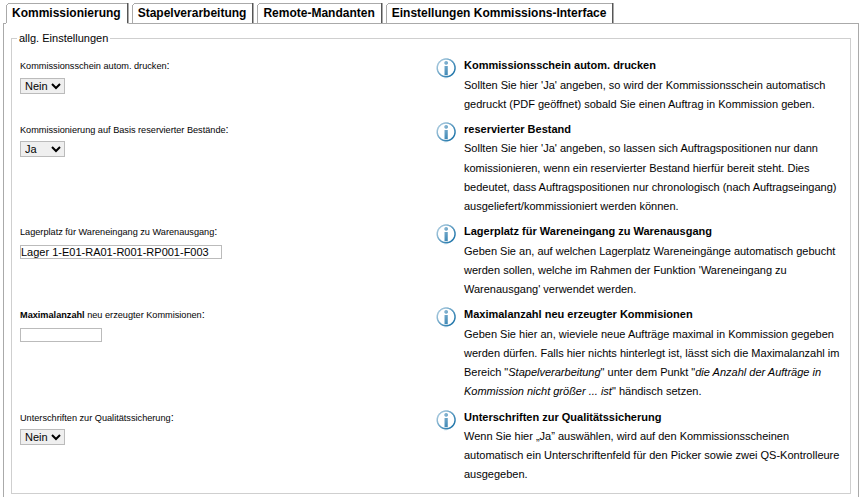 Hier können Einstellungen für die automatische Kommissionierung etc. vorgenommen werden.