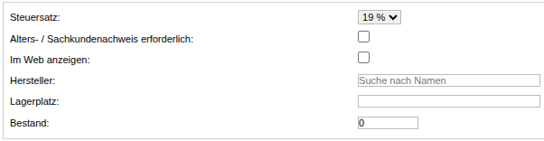 - Brutto: hier wird der Wert aus dem Feld "netto" mit dem oben angegebenen Steuersatz multipliziert, um den endgültigen Verkaufspreis zu erhalten.