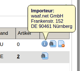 In der Übersicht in der letzten Tabelle erhalten Sie zusätzliche Informationen über die Anzahl der diesem Hersteller zugeordneten Artikel und ob ein Importeur angegeben ist.